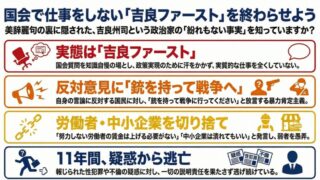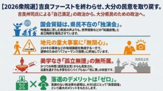 「吉良ファースト」の独演会と化した国会質問や地元軽視の実態。民意を無視する吉良州司氏を落選させ、大分1区に真の民主主義を取り戻そう。