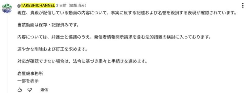 保守系ジャーナリストの近藤倫子氏・デイリーWiLLと、大分3区選出の岩屋毅衆院議員陣営との間で起きたYouTubeコメント欄での法的措置を巡るトラブル。